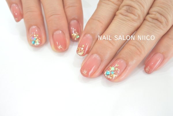 グラデーションにちょっぴり華やかなストーンデザインを。