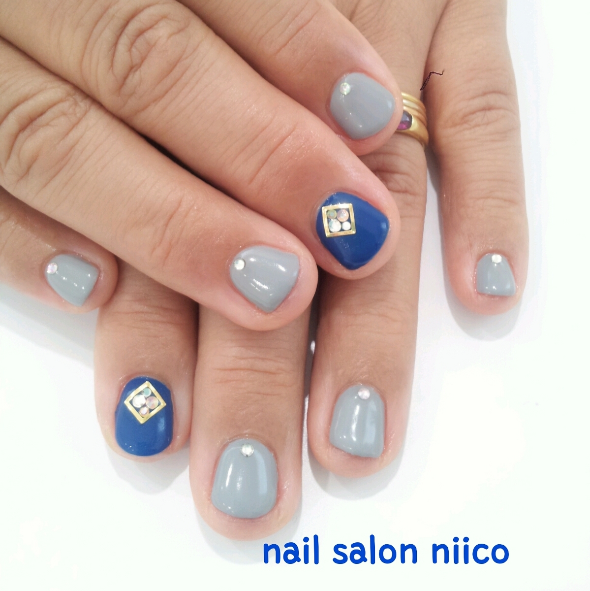 スクエアパーツとストーンを合わせたポイントアートが効いています ?